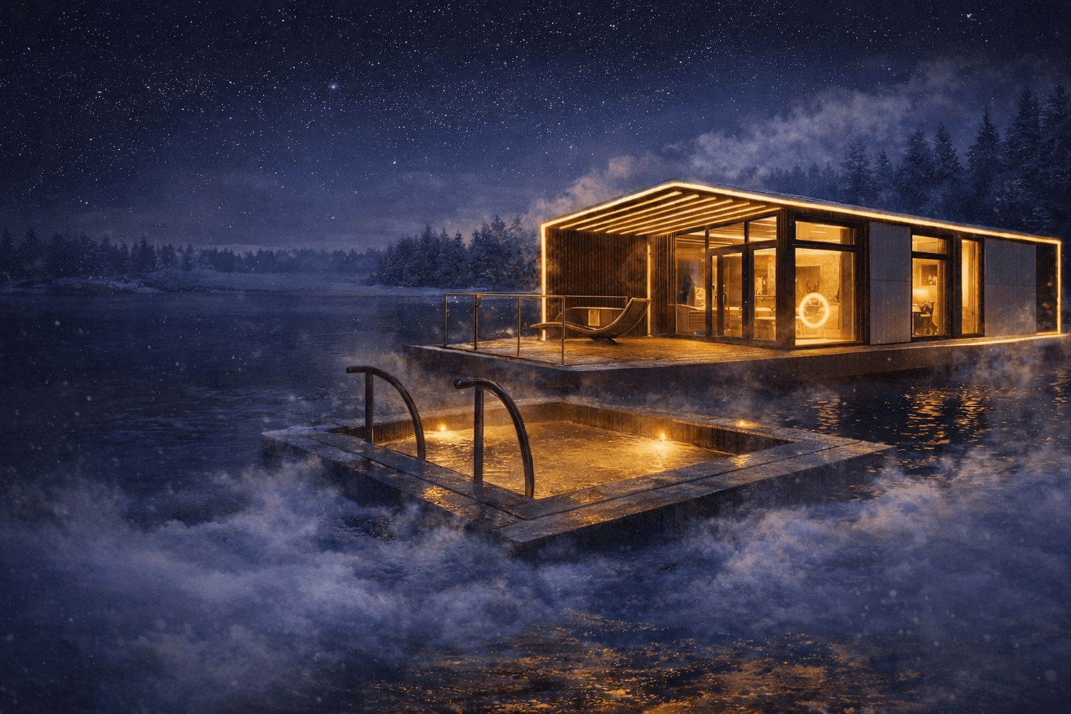 Только ваша компания, тишина, пар и вид на воду — всё, что нужно для перезагрузки.